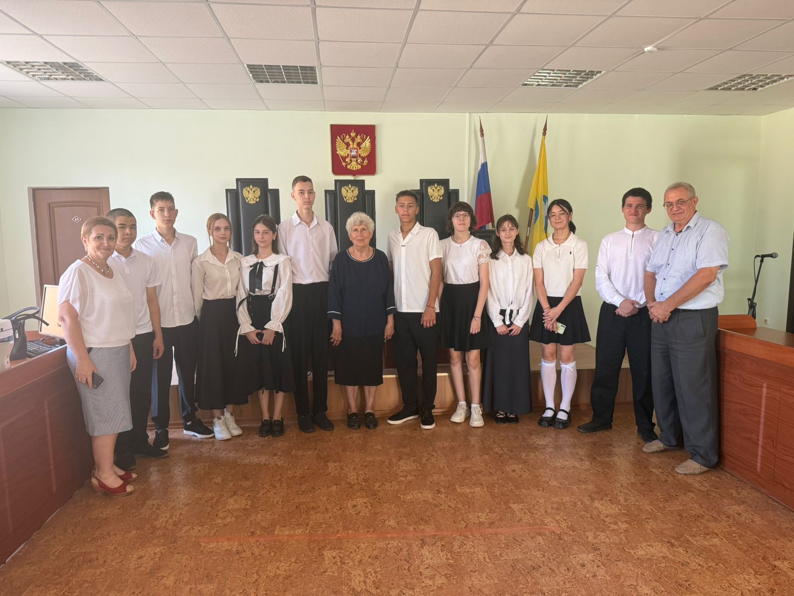 01 сентября 2025 года в стенах Яшалтинского районного суда Республики Калмыкия в связи с празднованием Дня знаний – 01 сентября 2025 года и в целях правового просвещения и воспитания подрастающего поколения прошла встреча с учащимися 10 класса МКОУ «Яшалтинская общеобразовательная школа имени В.А. Панченко» и их классным руководителем Шемет И.Ю. В ходе встречи судья Дрей Владимир Дмитриевич и судья в почетной отставке Сердюк Алевтина Васильевна рассказали участникам встречи об истории Яшалтинского районного суда, специфике работы в судебной системе. По окончанию выступления судей, учащиеся 10 класса задали им интересующие их вопросы, в числе которых вопросы, касающиеся специфики отправления правосудия в районной суде и требований предъявленных к кандидату на должность судьи, работника аппарата районного суда. Участники встречи поблагодарили друг друга за проведенное мероприятие, после чего сделали памятное фото. ![]() |